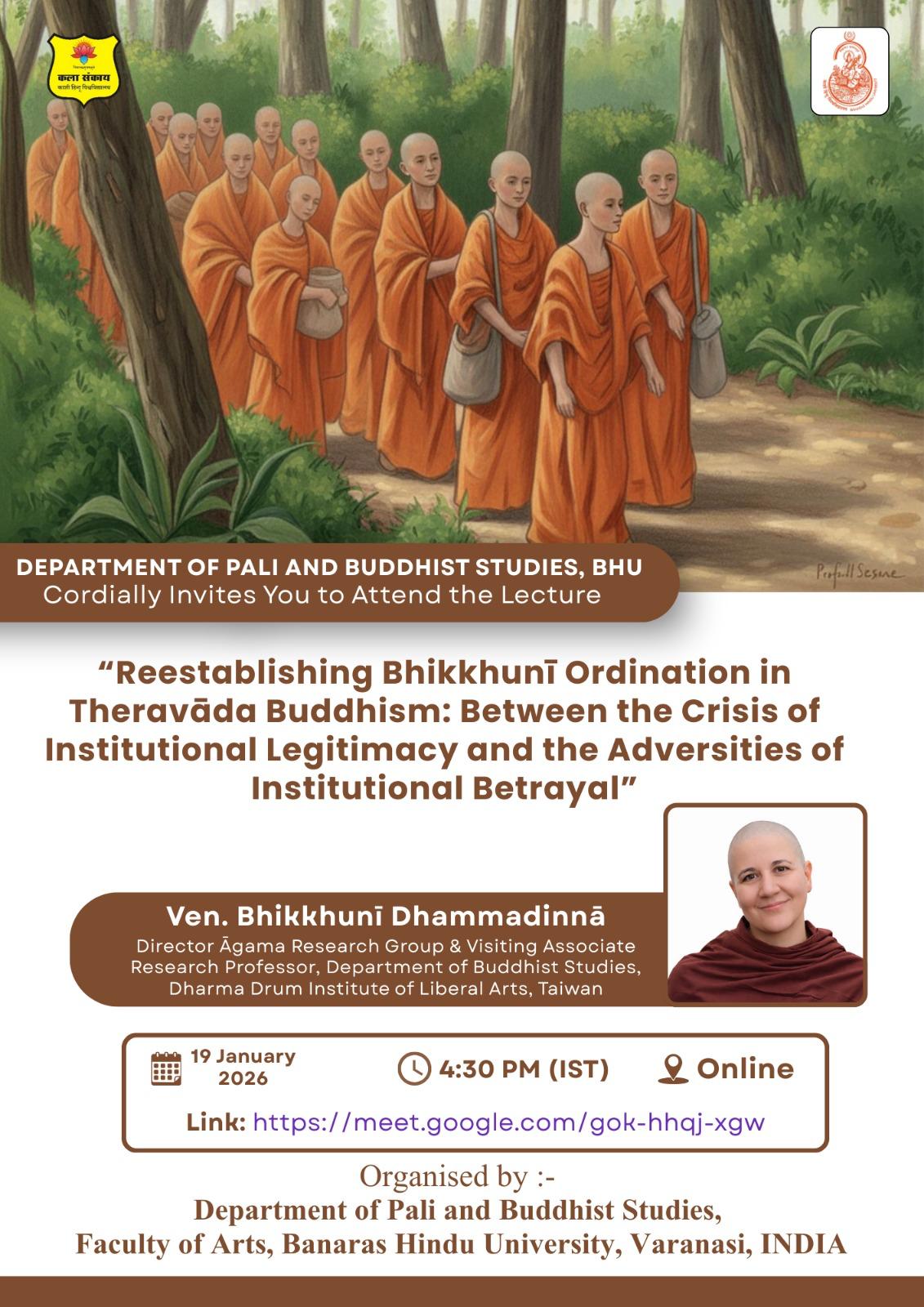 online lecture 16:30–18:30pm IST @ Department of Pali & Buddhist Studies, Banaras Hindu University, Varanasi, India
